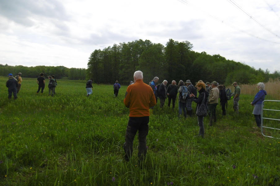 Das spezielle Thema war Beweidung von Feuchtwiesen im Naturschutzgebiet Mahlpfuhler Fenn unter der Berücksichtigung des Breitblättrigen Knabenkraut. Auf dem unteren Bild: die meisten der Teilnehmerrunde bei der Exkursion im Gelände.