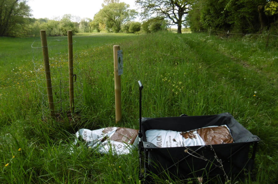 Bei den Neuanpflanzungen zum mulchen mal ohne PS unterwegs mit diesem faltbaren Handwagen. Wollte meinen CO ² Fußabdruck verbessern.