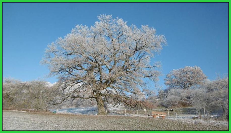 Bei dieser, zurzeit überzuckerten Eiche habe ich es schon öfter mal genossen, in den Abendstunden unter dem weit ausladenden Blätterschirm, zeitlos die Stimmung wirken zu lassen.
