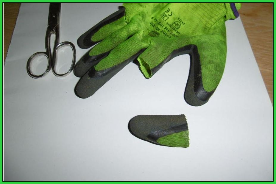 Sie wollte einfach nicht freiwillig herauskommen. Mit der Schere habe ich dann den bewohnten Handschuhfinger vorsichtig abgeschnitten.