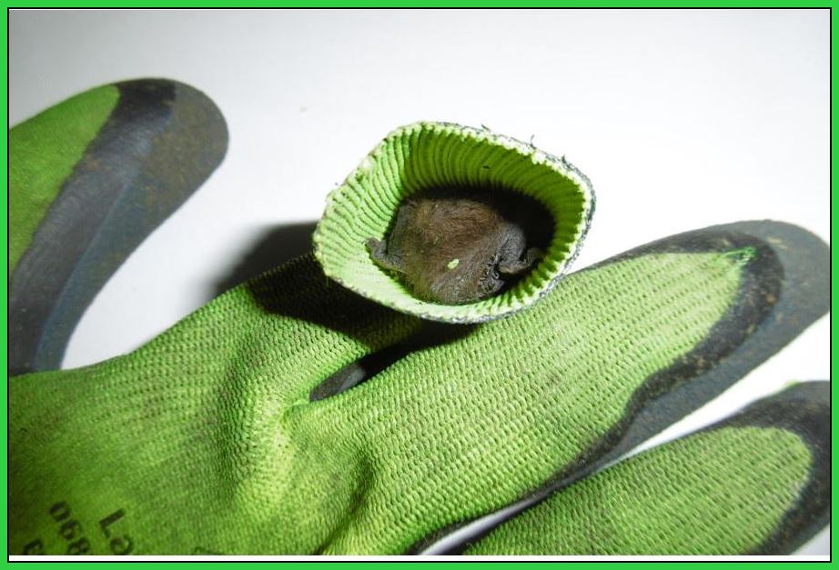 In diesem Handschuh, den ich aus Hann. Münden abgeholt habe, hatte sich eine Fledermaus zum winterschlafen verkrochen.