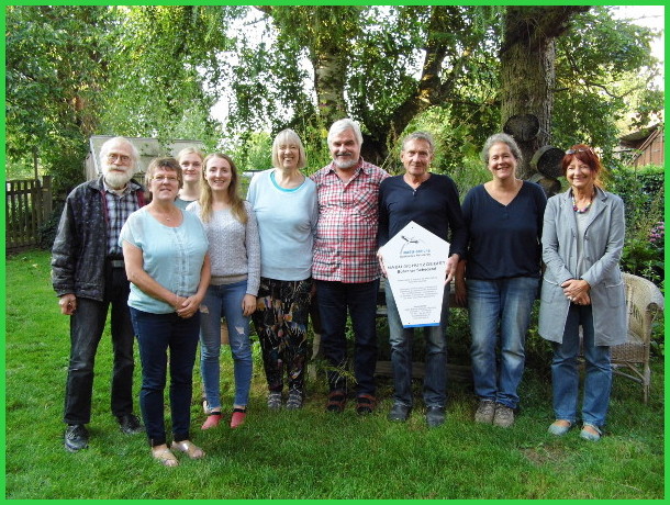 Auf dem Bild zu sehen Kalle und Wolfgang, zwei Weggefährten der ersten Stunden, nach dem Ausstellen eines Schildes vom Bührener Schutzgebiet.